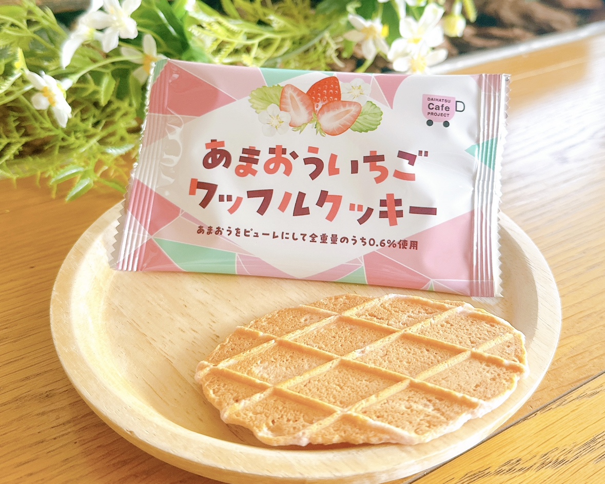 福岡県産の高級いちご「あまおう」を贅沢に使用したワッフルクッキーです。 いちごの甘酸っぱい香りと風味が口いっぱいに広がります。