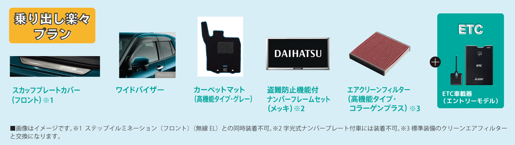 ■画像・イラストはすべてイメージです。 ■価格はすべて消費税込みです。■上記以外のメーカーオプション・ディーラーオプションは別途申し受けます。■価格には、保険料、税金(除く消費税)、登録諸費用、リサイクル料金は含まれません。■2025年7月現在の価格です。■乗り出し楽々プランの商品の仕様、注意事項は単品の説明に準じます。■既にご成約済みの車両にさかのぼって適用することはできません。■このキャンペーンは予告なく終了する場合がございます。■ナビ割との併用はできません。■詳しくはスタッフまでお問い合わせください。