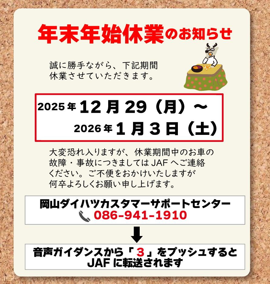日頃は岡山ダイハツをご利用いただき誠にありがとうございます。